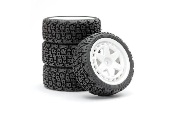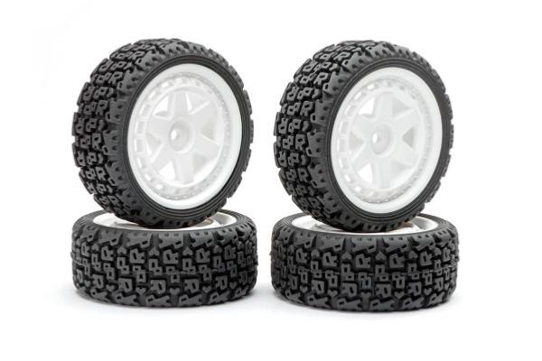 UK-1/10 'R' Block Rally Tyres/6-Spoke White Wheels (4) FASTRAX