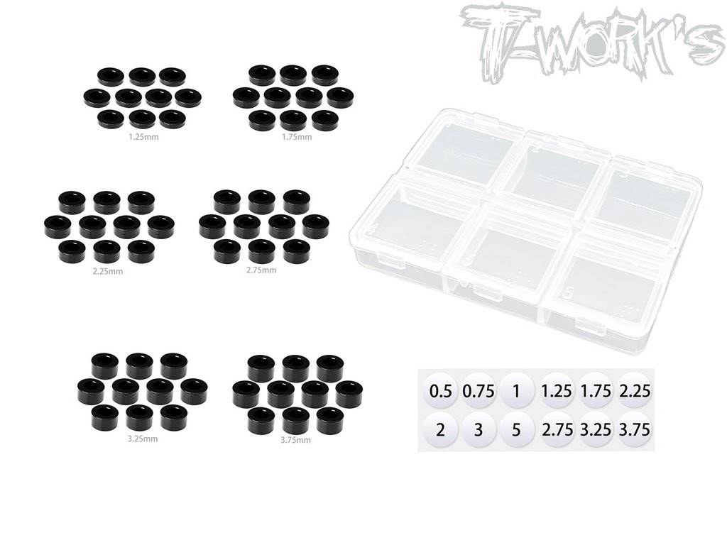 UK-Aluminum 3mm Bore Washer Set B ( Black ) 1.25.1.75,2.25,2.75,3.25,3.75mm Each 10pcs. T-WORK'S