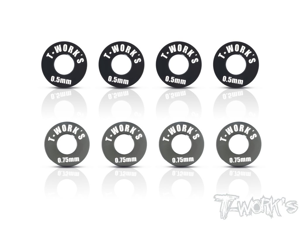 UK-Front Track Width Adj. Spacer 0.5mm & 0.75mm ( For Mugen MBX7/7R/MGT7/MBX8/Mugen MBX8R ) Each 4pcs. T-WORK'S