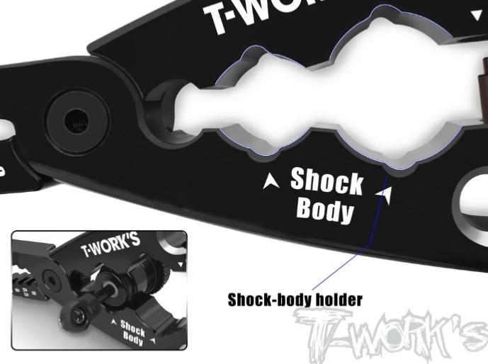 *Pincepour axe d'amortisseur : Équipée de pinces réglables de 6 à9 mm de largeur. Insérez simplement l'axe de l'amortisseur pourajuster facilement sa largeur.